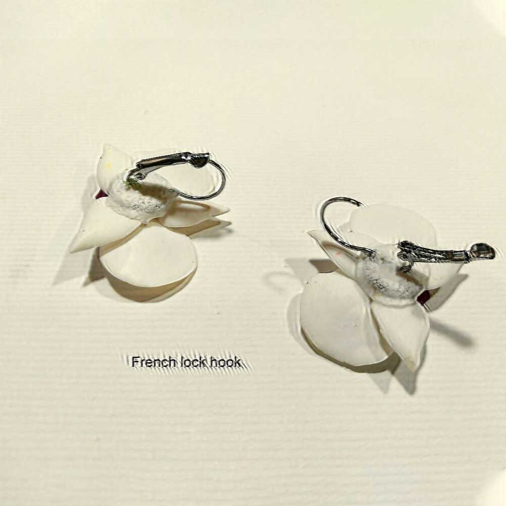 Made with affection and keen attention to every detail, these orchid earrings serve as more than just accessories. They also serve as symbols of beauty and elegance. The union of white orchids with diverse middles results in appealing and visually impressive designs. Each earring comes firmly attached to hypoallergenic hooks or clips, ensuring comfort and longevity.