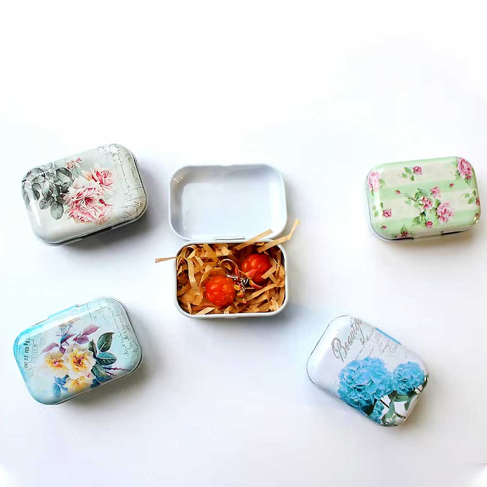 - You can choose earrings in a beautiful tin box (randomly selected)size 5.5cmx3.5cm (2 1/4"x 1 3/8") with floral print on the lid. The filler is very thin paper shavings.