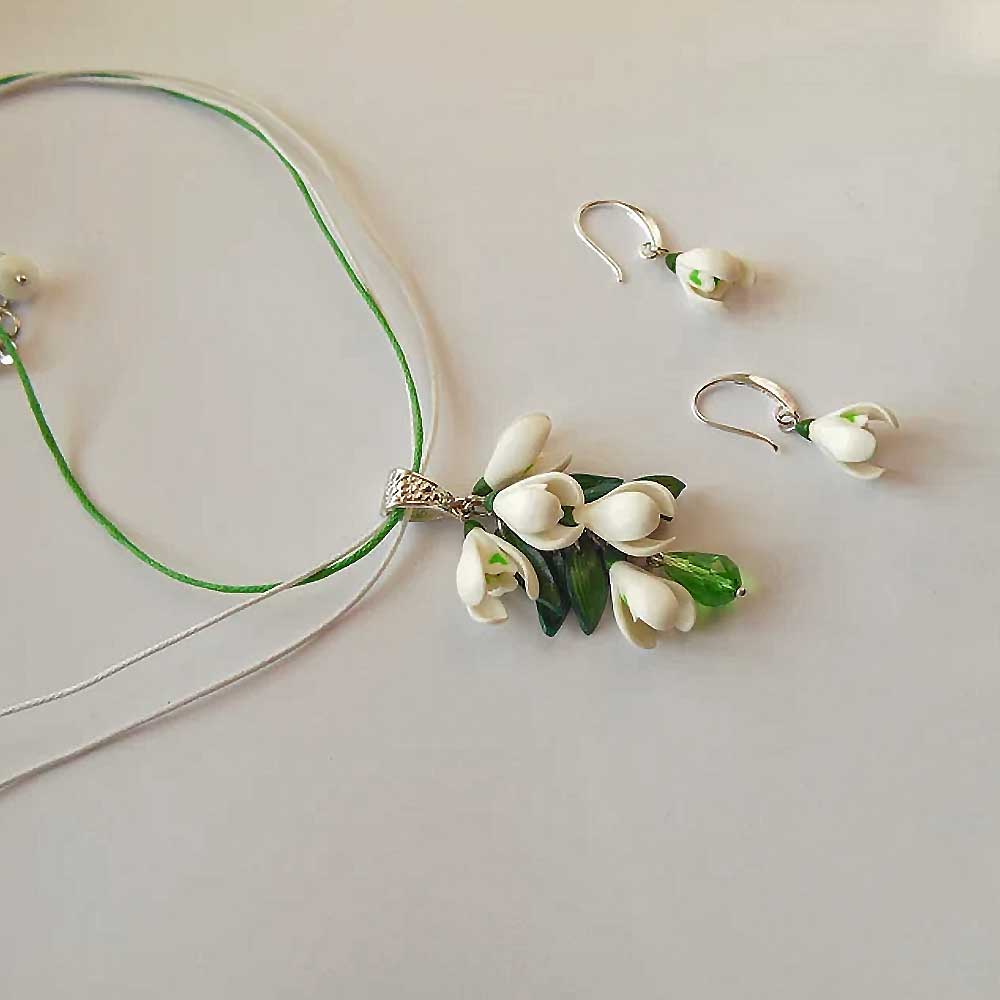 Spring's Embrace: Snowdrop Earrings & Pendant Polymer Clay.