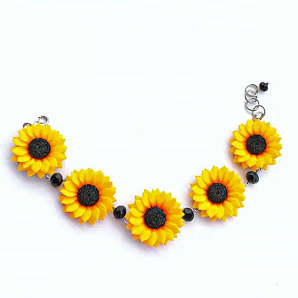 Summer on Wrist: Sunflower Bracelet Polymer Clay.